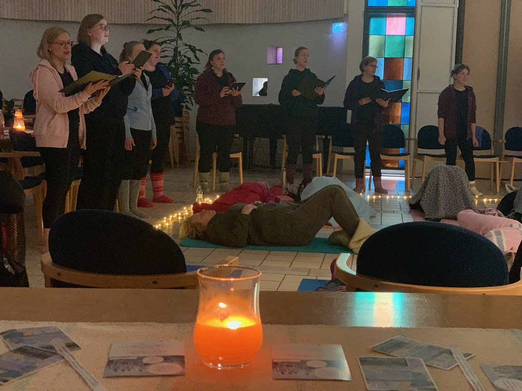 Naiskuoro Pihlajan meditaatiokonsertit yhdistävät kuoromusiikin ja lempeän meditaation ainutlaatuiseksi elämykseksi. Yleisö lepää joogamatoilla kuoron ympäröimänä, antaen laulun täyttää tilan ja mielen. Tilaisuus tarjoaa rauhaa, läsnäoloa ja kokonaisvaltaisen aistikokemuksen musiikin kannattelemana.
